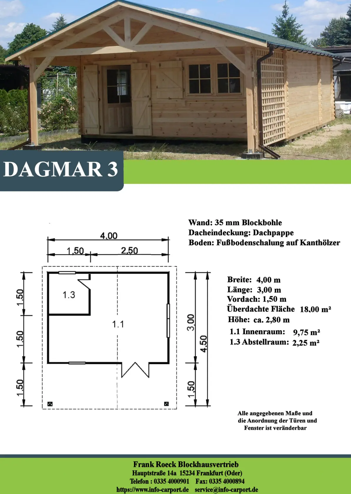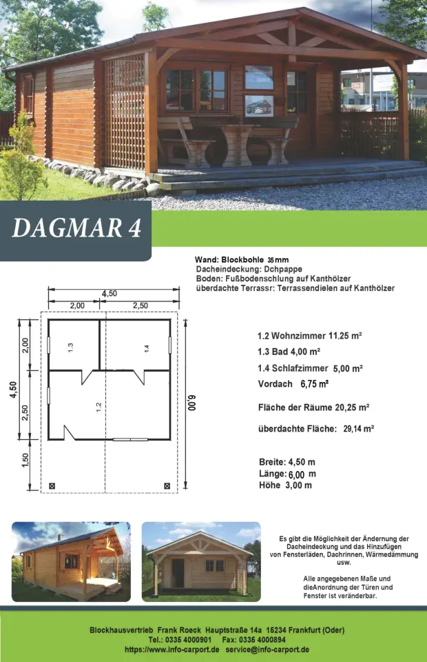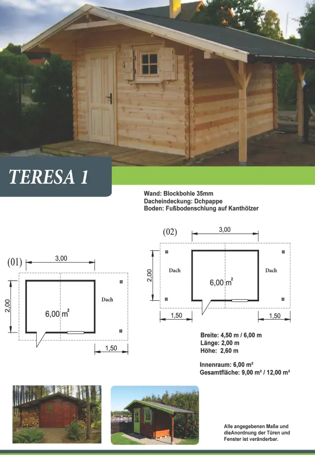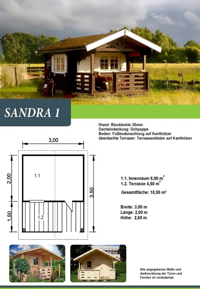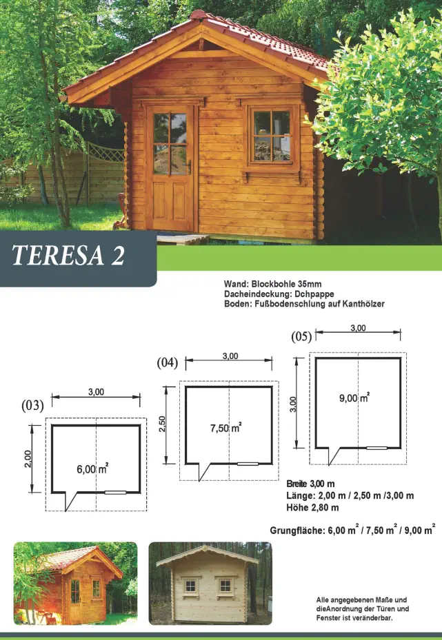 Unsere Gartenhäuser werden traditionell in Blockbohlenbauweise aus hochwertigen Materialien angefertigt. Wir bieten Gartenhäuser in der Blockbohlenstärke 35 mm an.Für die Erstellung Ihres Angebotes benötigen wir von Ihnen eine kleine Grundrisszeichnung mit Ihrem Wunsch der Raumaufteilung sowie die Anordnung der Türen und Fenster.
